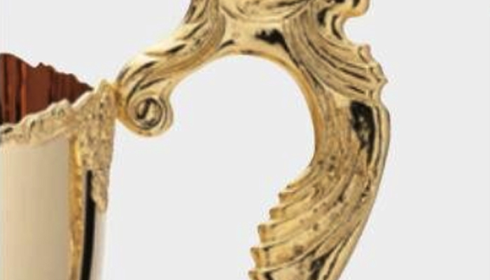 - へら絞り製法で成形する真鍮製カップは、滑らかな曲線と重厚感が特長です。熟練職人の手仕事により量産品では表現できない存在感を実現し、伝統的な優勝カップとして高い評価を得ています。
