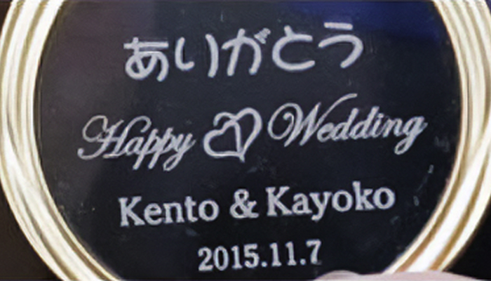 日付・大会名・個人名を刻印してもらいましたが、文字が小さくてもハッキリ読み取ることができ、非常に美しい仕上がりでした。